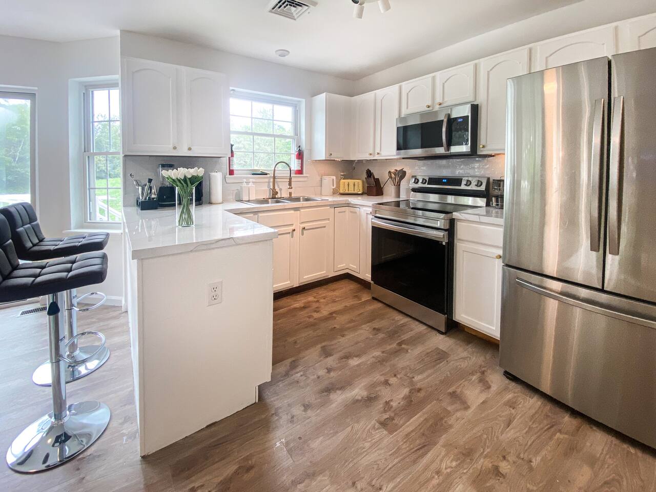 *By booking the house, you agree that, as the condition your use of the backyard, hot tub, sauna, fireplace, pond, services, facilities and amenities at your own risk. Wildlife animals(bears etc. ) may appear, use the backyard at your own risk. * PETS: Our house is pet friendly. However, please contact us prior to your booking if you will bring your pets with you. An extra $50 pet fee will be charged for up to 2 pets after your booking. For more than 2 pets, there's an extra $50/pet. (This is not included in the booking price.) HOT TUB(maximum 4 people): 1. The hot tub will be working properly (reaching maximum 104F) when the air temperature is greater than 50℉/10 ℃. ) 2. Please note that the hot tub usually needs 10-15hrs heating time before your use. Increase 2℉ takes 1 hr. Please schedule ahead if you want to use it during your stay. 3. The Hot Tub has a safety shut-off feature which will turn off the heating if the set temperature is not reached with 72hours. This may occur in cold external conditions. In that case, guests need to re-start the heating. 4. Please set the temperature to 92F when not in use. INDOOR SAUNA: For 2 people GAS GRILL: We provide 1 filled propane tank for the grill. Guests need to pay an extra $20/tank for a refill. We usually backup one full propane tank for a refill but please kindly understand if the spare propane tank is used out too. In very few cases, guests will need to refill themselves.) AMENITY (*seasonal not guaranteed*): The community amenities include the outdoor swimming pool, island park, Main beach, Pine tree Lake, Deer Lake, Dry Sawmill Run Lake, Emerald Lake. * Guests need to go to the community administration office to get their passes (14 adults passes maximum).. However, please let us know in advance if you're planning to purchase the community passes. * Amenities pass price list 1 Day Amenities pass: $20/person, no fee for children under 2 years old 3 Days Amenities pass: $30/person, no fee for children under 2 years old 7 Days Amenities pass: $50/person, no fee for children under 2 years old Community Administration Office opening hours: Tuesday, Thursday and Saturday 8am-4pm Address: 1112 Glade Dr S, Long Pond, PA 18334. (7mins driving from the house)