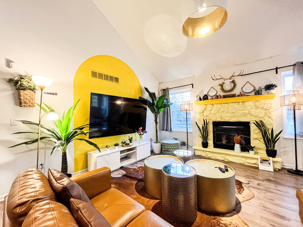 *POOL IS CLOSED FOR THE SEASON (not heated pool). POOL AVAILABLE FROM Memorial Day weekend TO MID-SEPTEMBER. DATES VARY EVERY YEAR. Due to the current situation, we do take extra precaution by deep clean the house thoroughly and sanitize handles, railings, cabinets, remotes, beds, couches, etc... Please understand NO LATE CHECKOUT is allowed at this time, our cleaners need enough time to do clean and sanitization job. Late check-out after 11AM will be charged an EXTRA $200. ***The house is in mountains. Wildlife animals may appear, Don't leave food outside, it will attract bears. Play in the backyard at your own risk. **** LAYOUT: The house has 2 levels including the basement. 3 bedrooms and 2.5 bathrooms on the upper floor. 2 bedrooms and 1 bathroom in the basement. Movie room is transformed from garage. MOVIE ROOM: Projector and screen, Hot tub, Sauna, hockey table ***IMPORTANT*** HOT TUB(maximum 4 people): The hot tub is set up in the movie room. Indoor Sauna for 2 people. 1. The hot tub will be working properly (reaching maximum 104F) when the air temperature is greater than 50℉/10 ℃. ) 2. Please note that the hot tub usually needs 10-15hrs heating time before your use. Increase 2℉ takes 1 hr. Please schedule ahead if you want to use it during your stay. 3. The Hot Tub has a safety shut-off feature which will turn off the heating if the set temperature is not reached with 72hours. This may occur in cold external conditions. In that case, guests need to re-start the heating. 4. Please set the temperature to 98F when not in use. INDOOR LIVING: fireplace, 75 inch flat-screen TVs , Japanese style low table and seating, Swing chair KITCHEN&DINING ROOM: large long dining table, fully equipped kitchen, stainless steel refrigerator, glass-top stove, oven, dishwasher, microwave, coffee maker, full knife set, dishware & flatware, cooking essentials DECK&BACKYARD: gas grill, fire pit, outdoor seatings and picnic table (NOTE: We provide 1 filled propane tank for the grill. Guests need to pay an extra $20/tank for a refill. We usually backup one full propane tank for a refill but please kindly understand if the spare propane tank is used out too. In very few cases, guests will need to refill themselves.) GAME ROOM: Wall-size Movie screen, pool table, poker table , foosball table SLEEP ARRANGEMENT: Bedroom 1: 1 Kind bed Bedroom 2: 1 queen bed Bedroom 3: 1 queen beds Bedroom 4: 1 queen beds Bedroom 5: 1 Kind bed, 2 single beds Basement common area: 1 twin floor mattress GENERAL: Complimentary toiletries, linens/towels, central air conditioning, central heat, free WiFi PARKING: outdoor parking up to 4 cars. *Note: Your safety matters. This property features 3 exterior security cameras, at the front door and backyard. They do not look into interior spaces. We also won't check the outdoor cameras unless there are alarms.