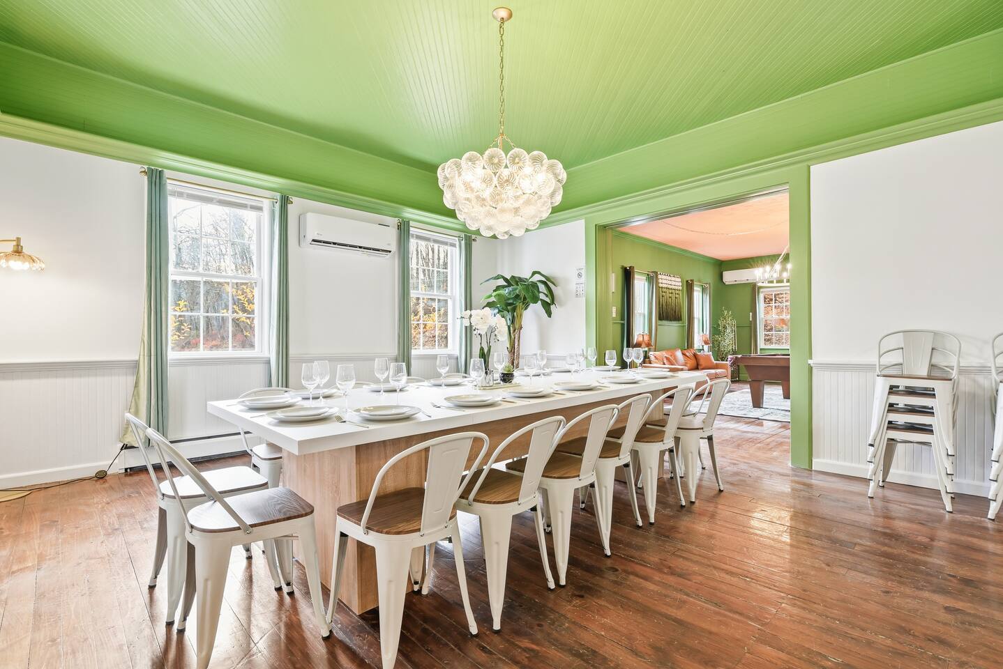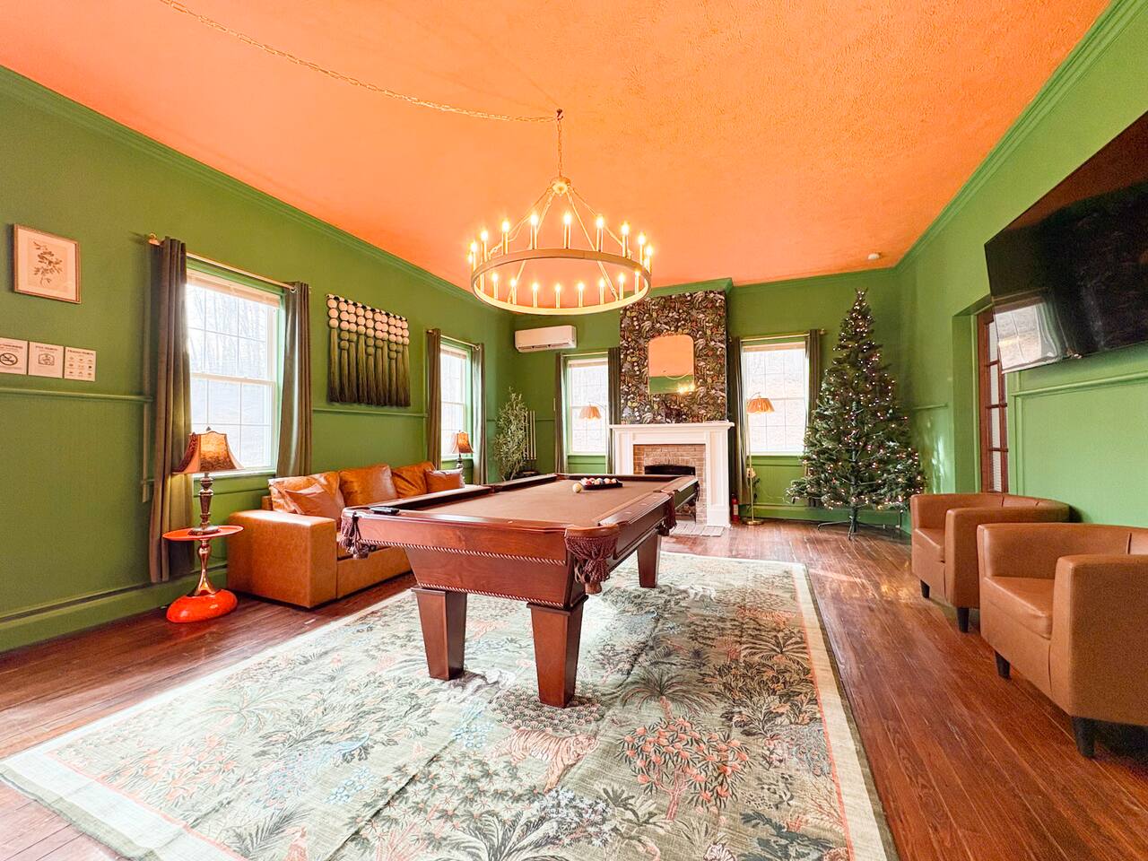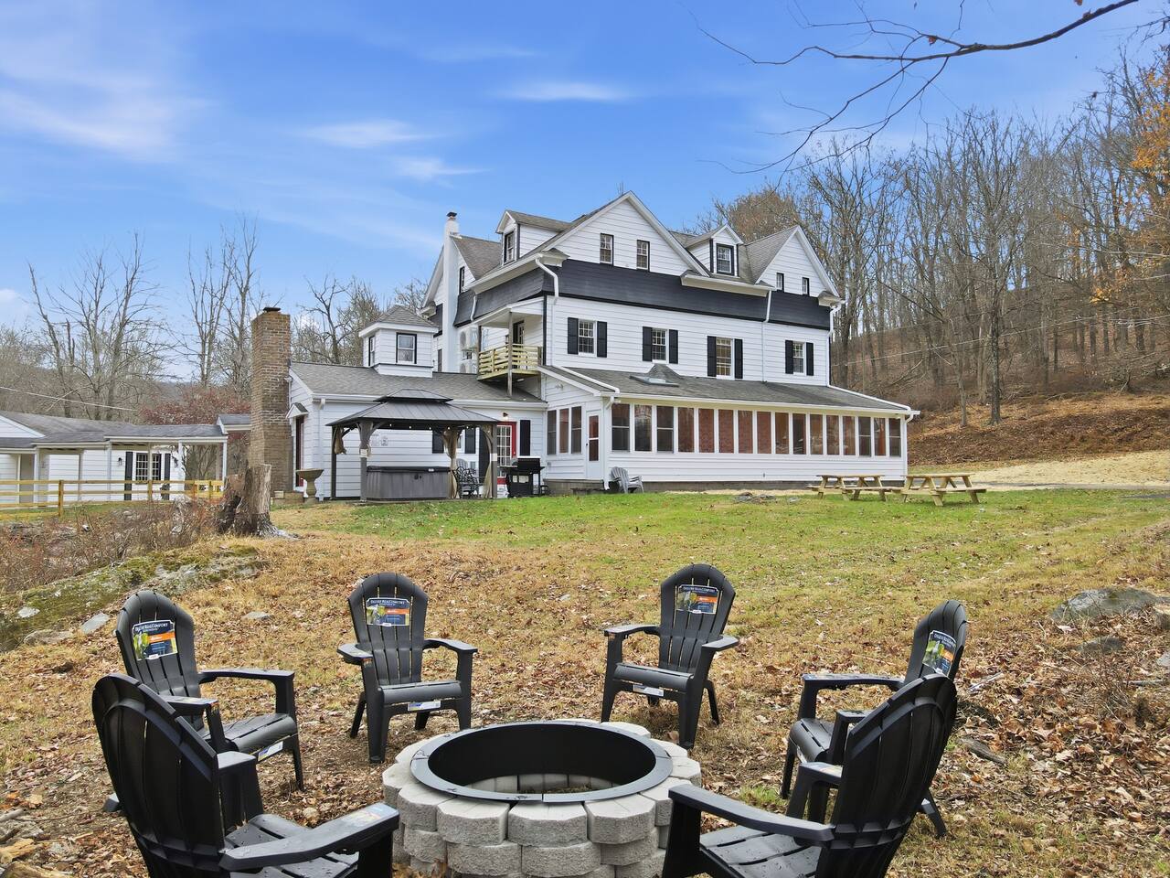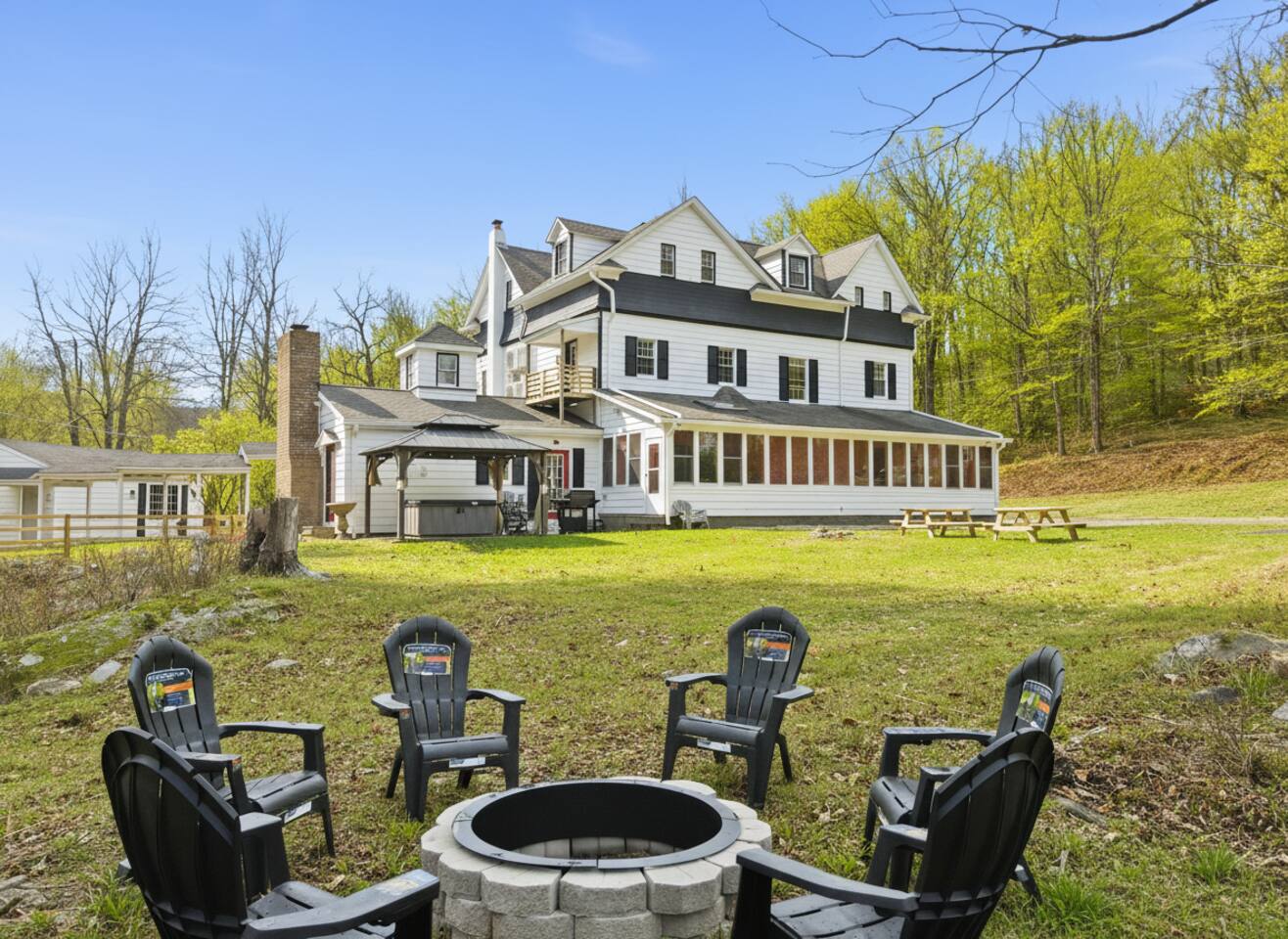 Step into a 120-year-old luxury estate with 8 bedrooms, 4.5 baths, a high-ceiling wood grand room with bar, and a chef’s kitchen boasting a 60" 10-burner range and quartz counters. Relax in the movie room, oversized sauna, and outdoor hot tub, or enjoy the propane BBQ and peaceful pond and stream. Ideal for families and groups seeking space, comfort, and timeless charm.