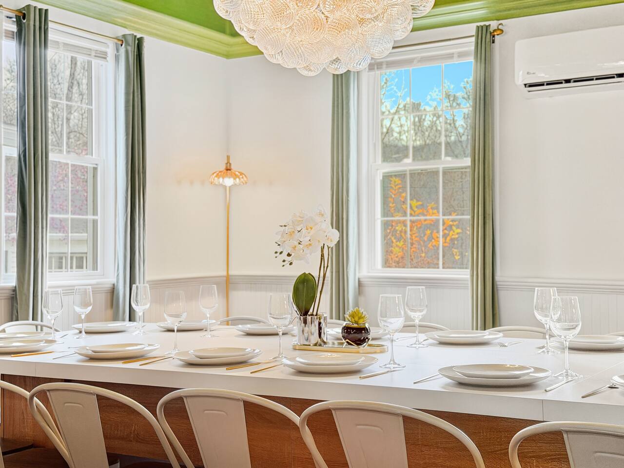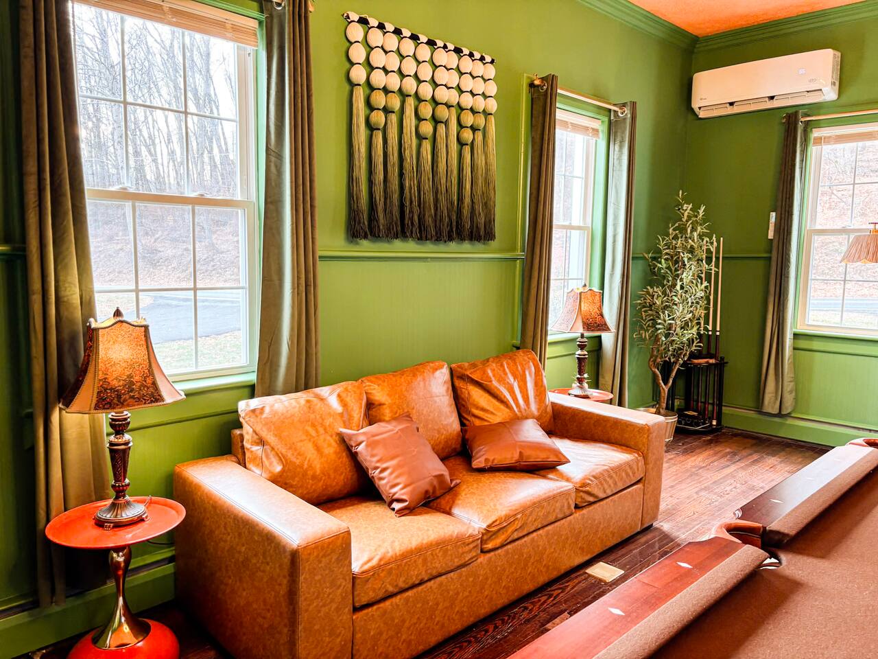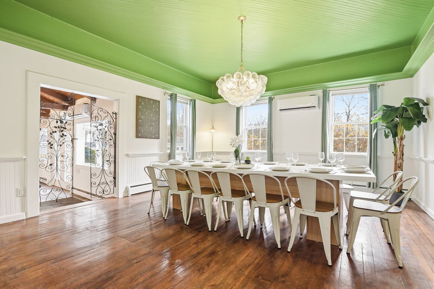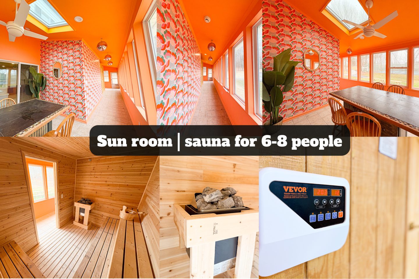 Step into a 120-year-old luxury estate with 8 bedrooms, 4.5 baths, a high-ceiling wood grand room with bar, and a chef’s kitchen boasting a 60" 10-burner range and quartz counters. Relax in the movie room, oversized sauna, and outdoor hot tub, or enjoy the propane BBQ and peaceful pond and stream. Ideal for families and groups seeking space, comfort, and timeless charm.