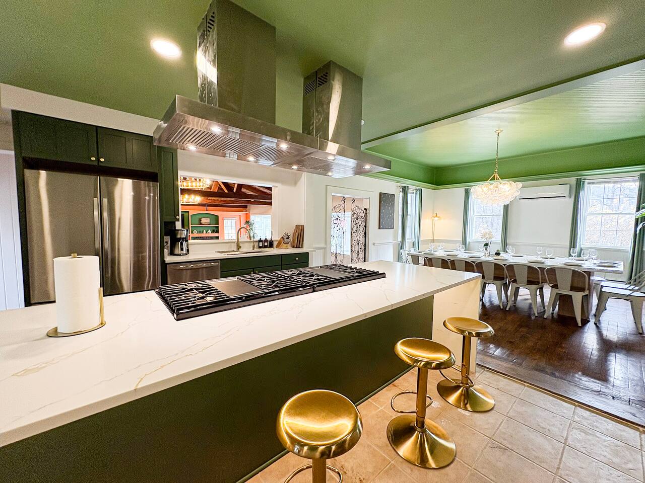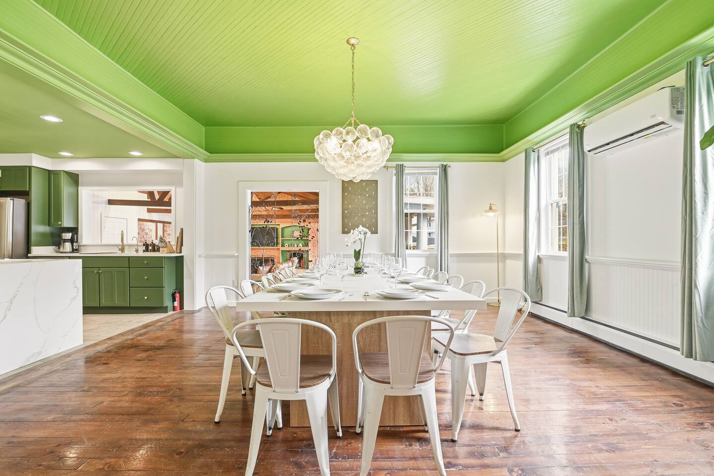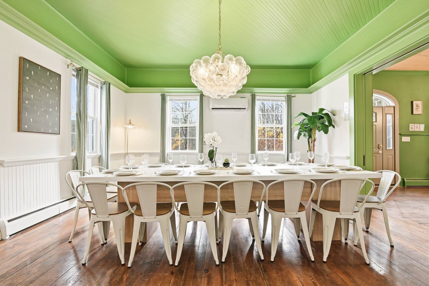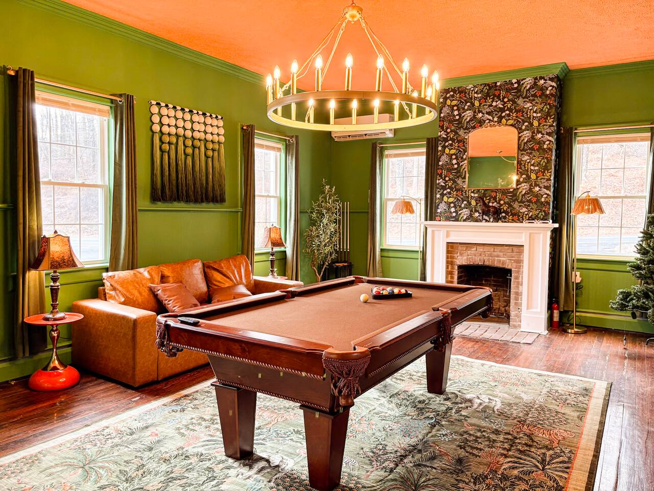 Step into a 120-year-old luxury estate with 8 bedrooms, 4.5 baths, a high-ceiling wood grand room with bar, and a chef’s kitchen boasting a 60" 10-burner range and quartz counters. Relax in the movie room, oversized sauna, and outdoor hot tub, or enjoy the propane BBQ and peaceful pond and stream. Ideal for families and groups seeking space, comfort, and timeless charm.