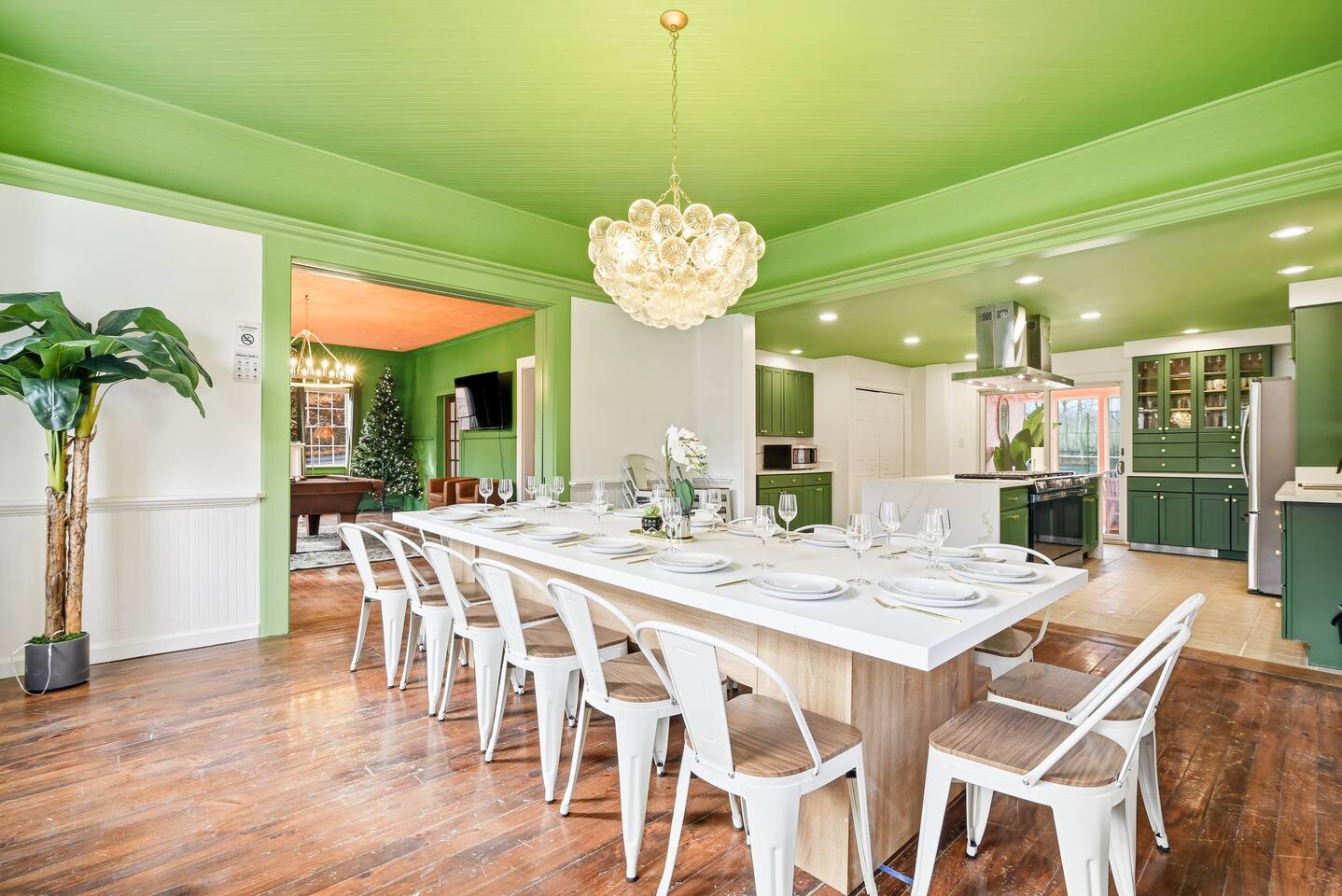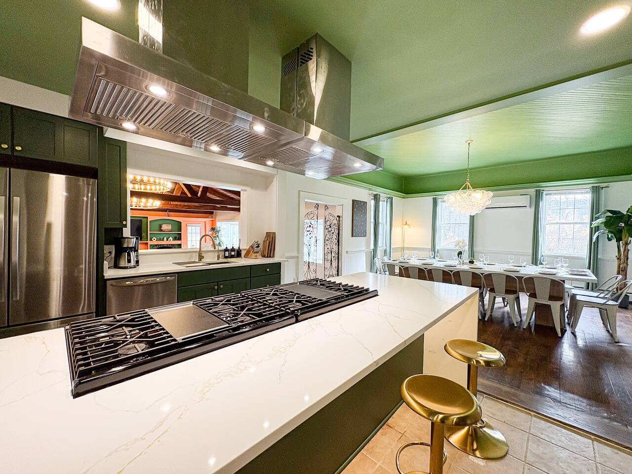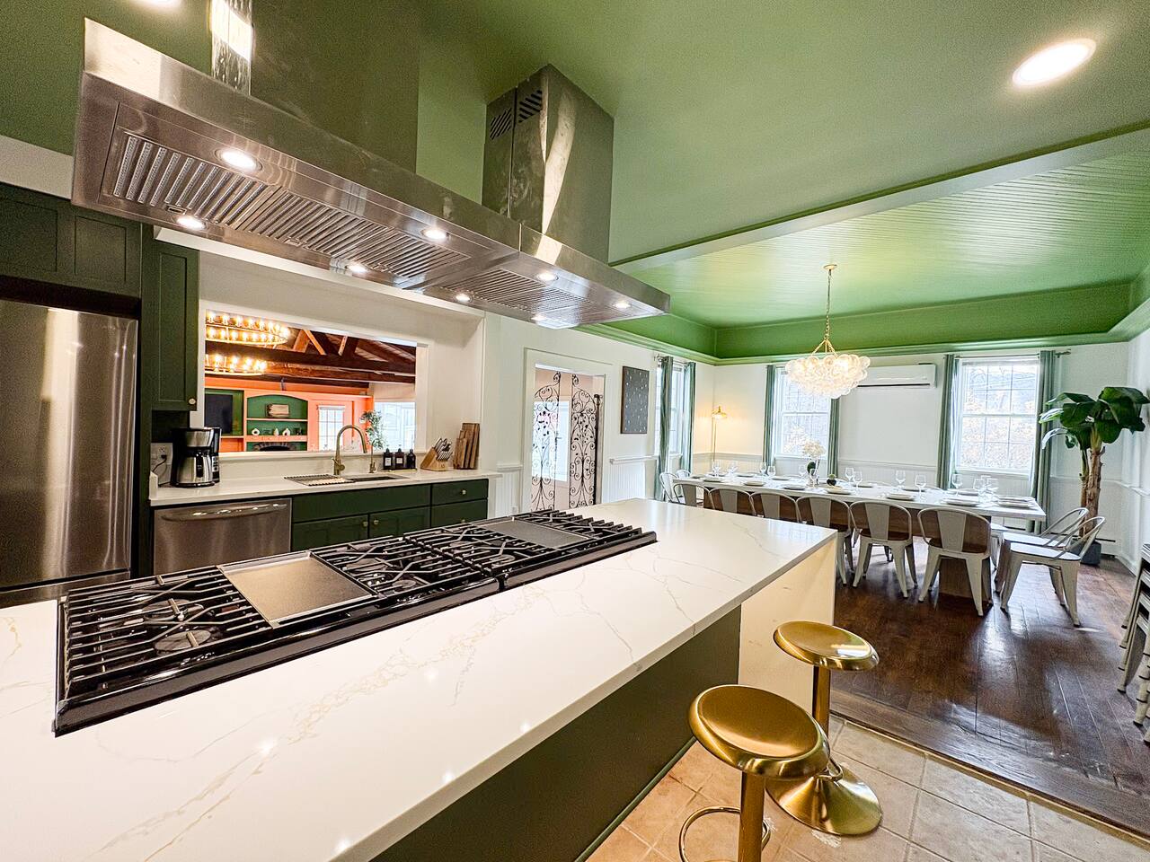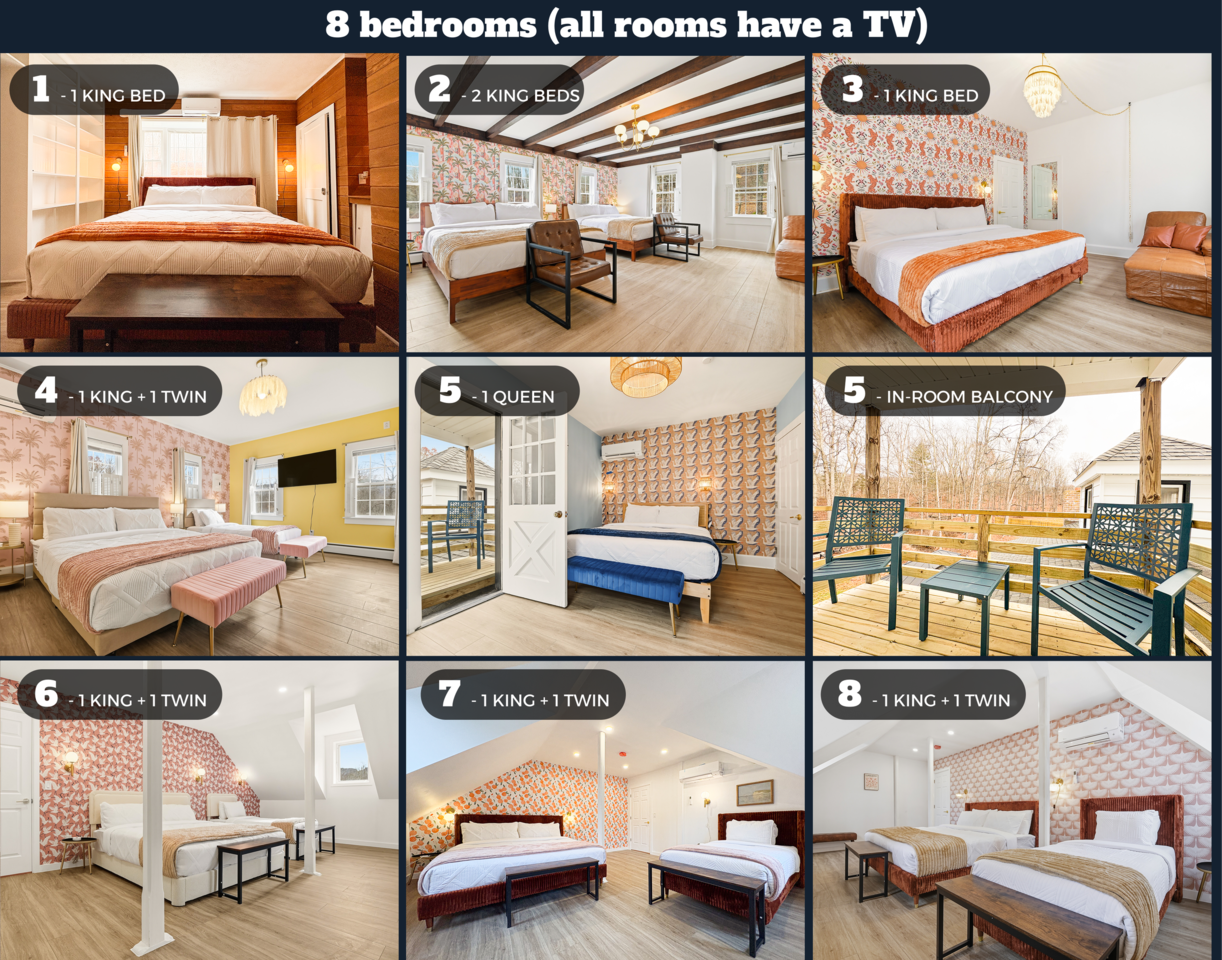 Step into a 120-year-old luxury estate with 8 bedrooms, 4.5 baths, a high-ceiling wood grand room with bar, and a chef’s kitchen boasting a 60" 10-burner range and quartz counters. Relax in the movie room, oversized sauna, and outdoor hot tub, or enjoy the propane BBQ and peaceful pond and stream. Ideal for families and groups seeking space, comfort, and timeless charm.