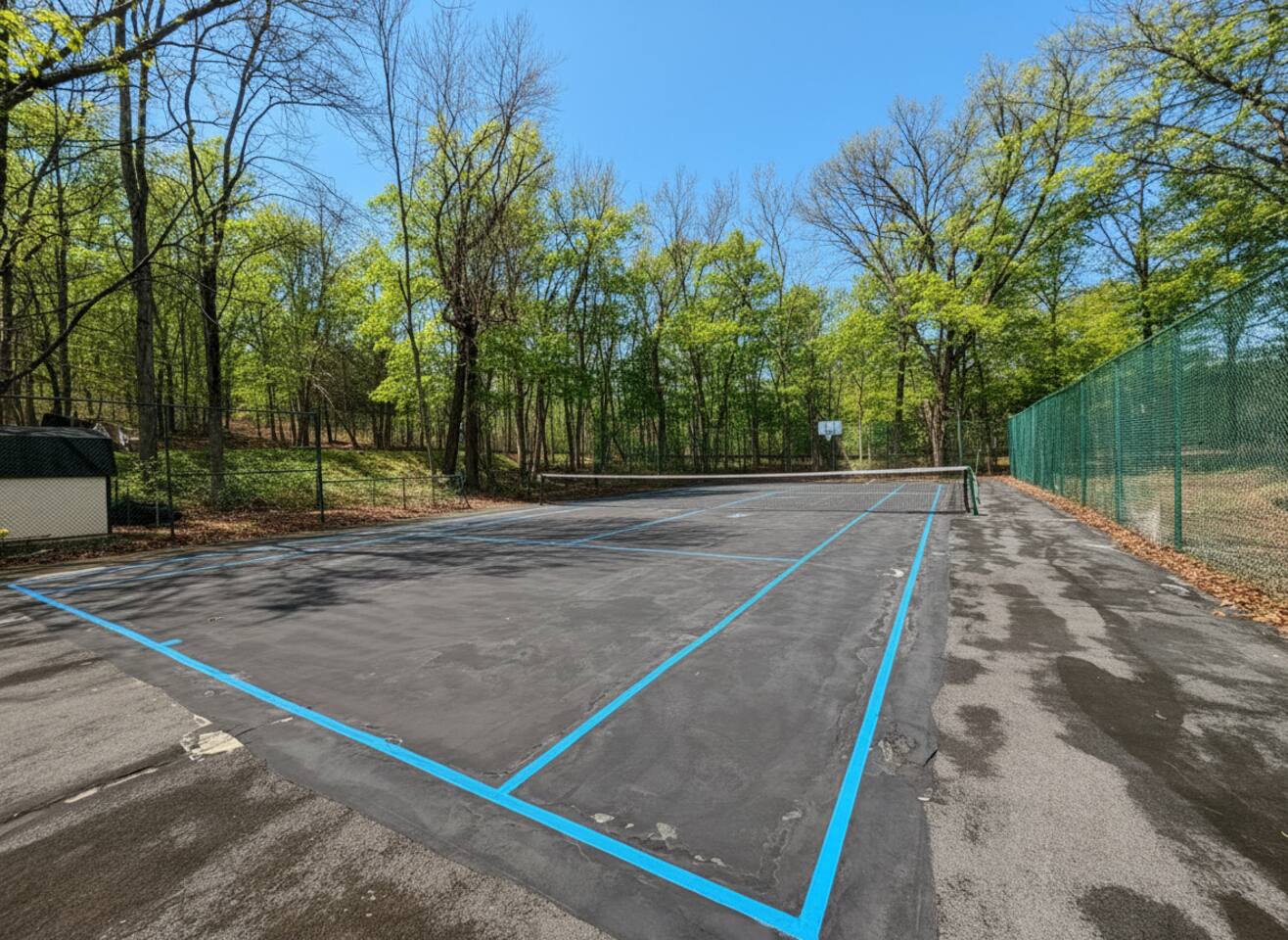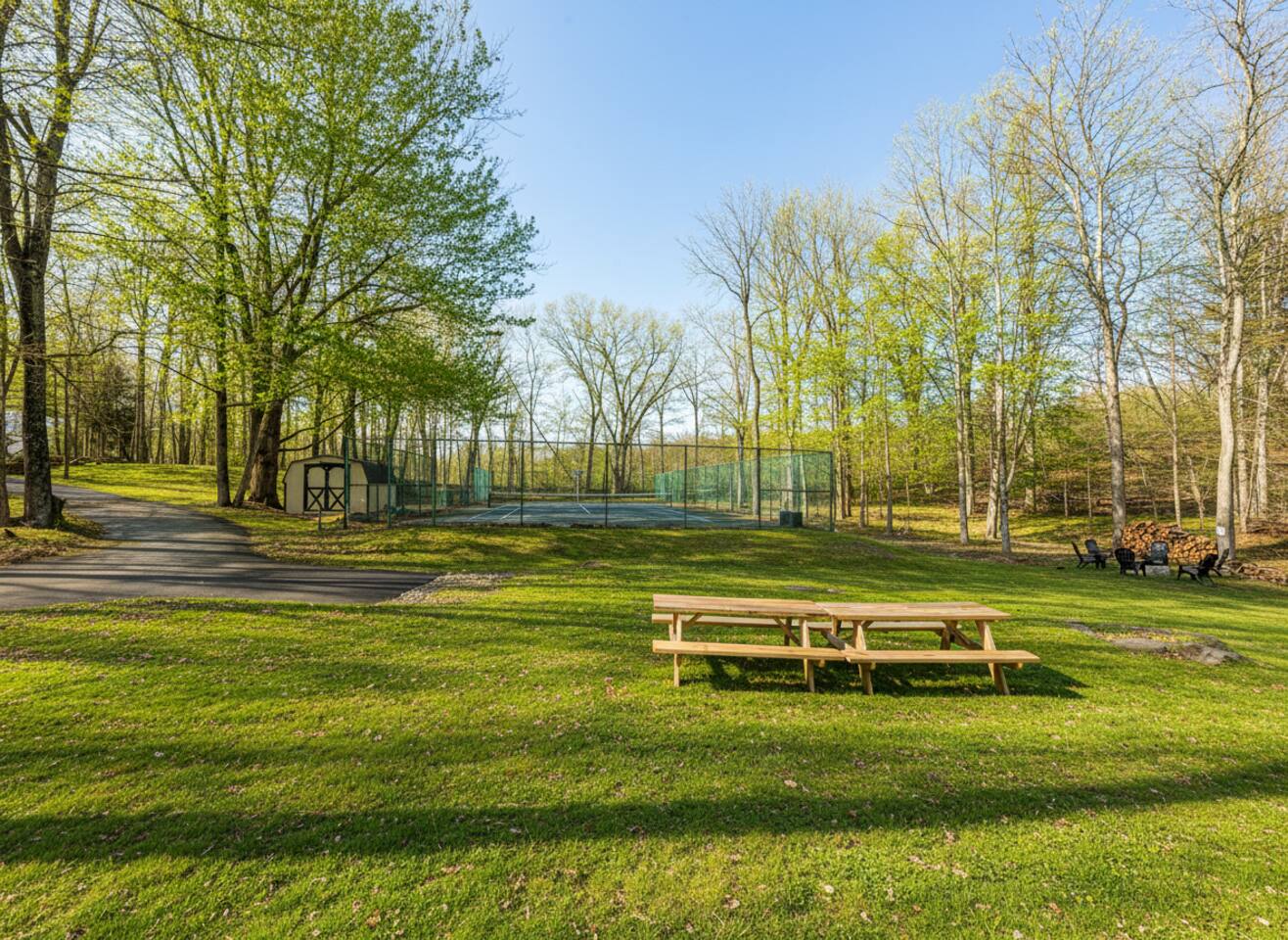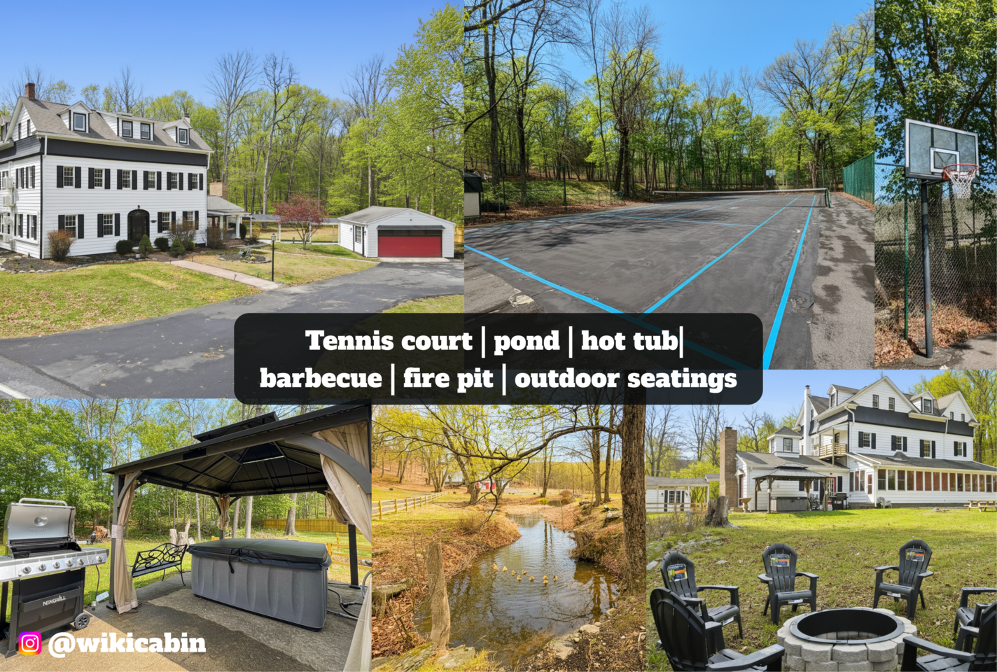 The outdoor space was peaceful, with a pond, stream, grill, and plenty of seating. The private tennis court was a great bonus and kept everyone entertained.