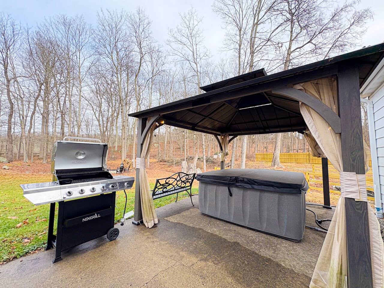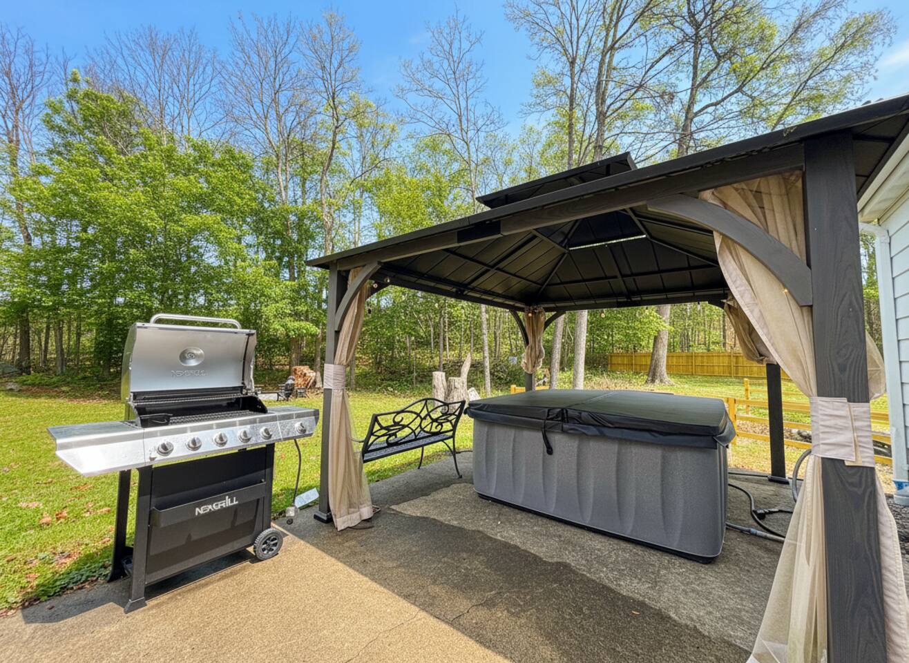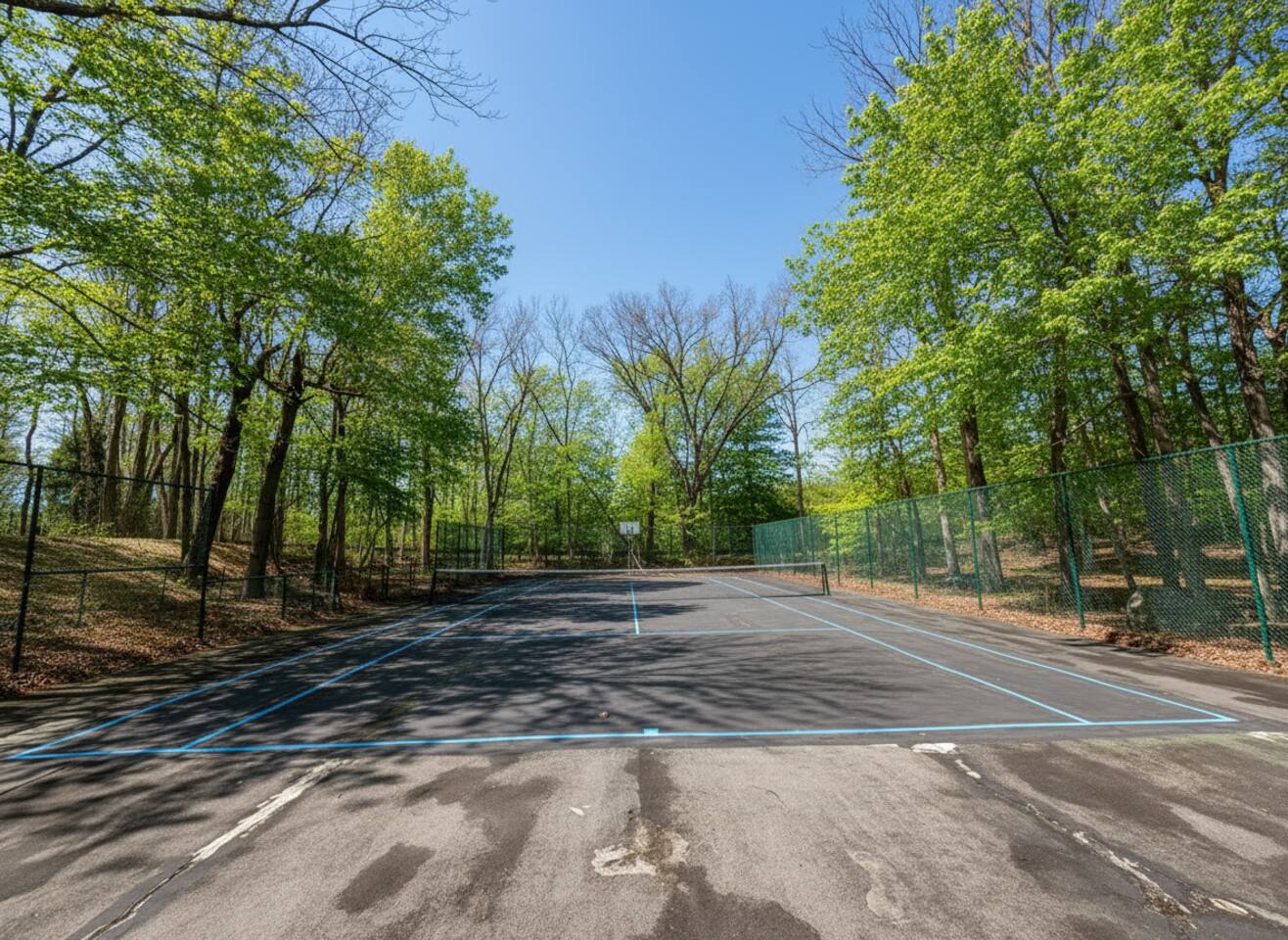 The outdoor space was peaceful, with a pond, stream, grill, and plenty of seating. The private tennis court was a great bonus and kept everyone entertained.
