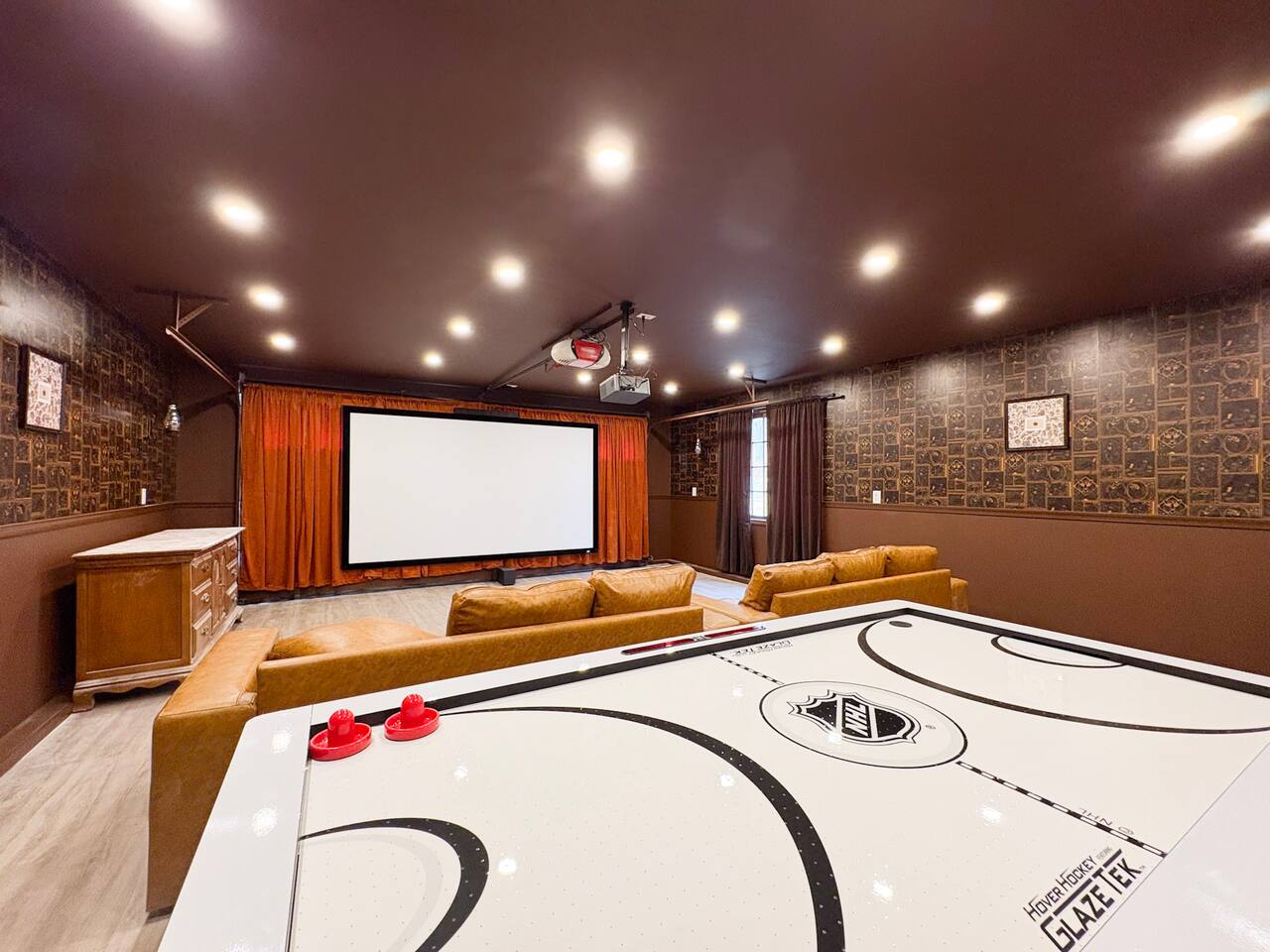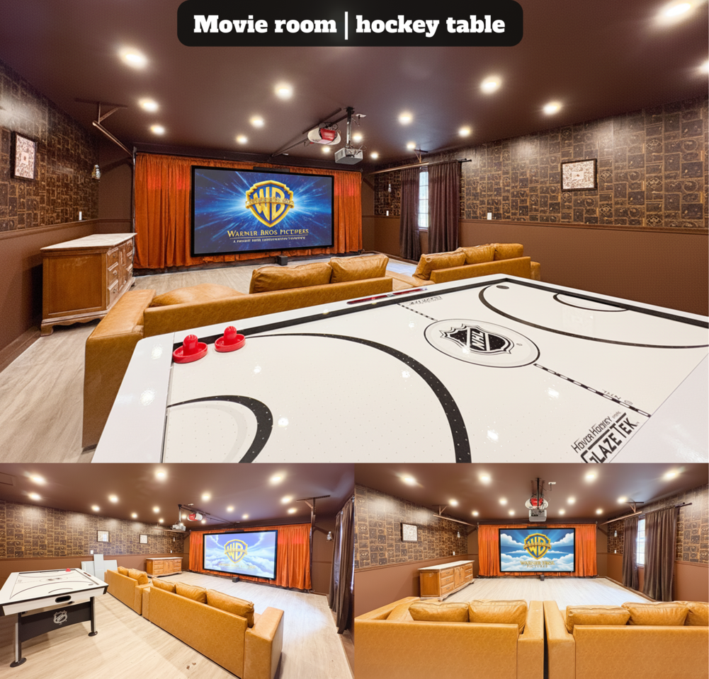 The bedrooms were spacious and comfortable, with supportive beds and high-quality linens. The layout gave our group both privacy and shared space. The amenities were a highlight — the sauna and hot tub were perfect for relaxing, the movie room became a favorite hangout, and the double-range kitchen made cooking for a large group easy.