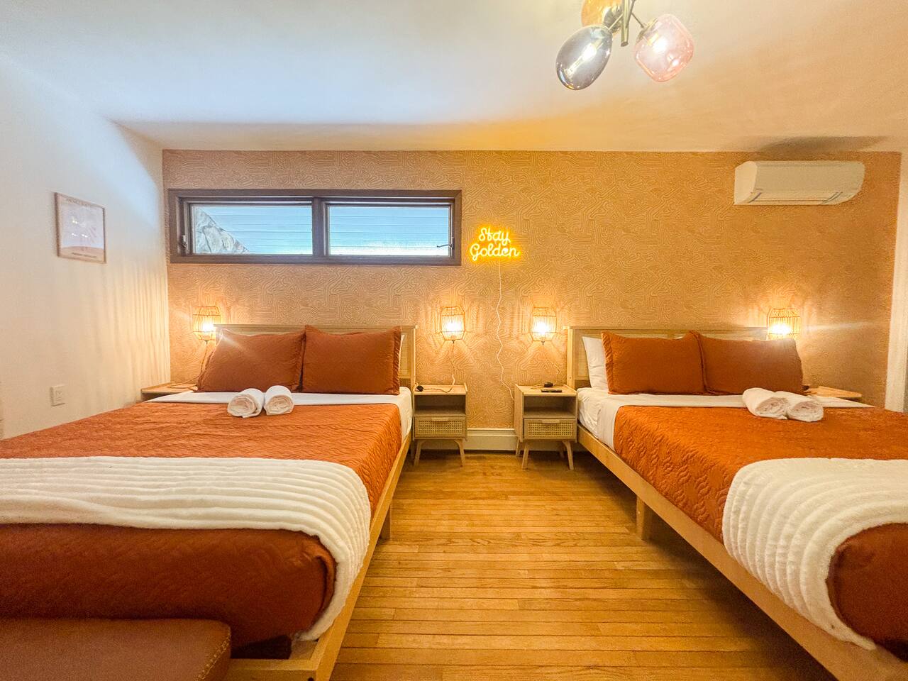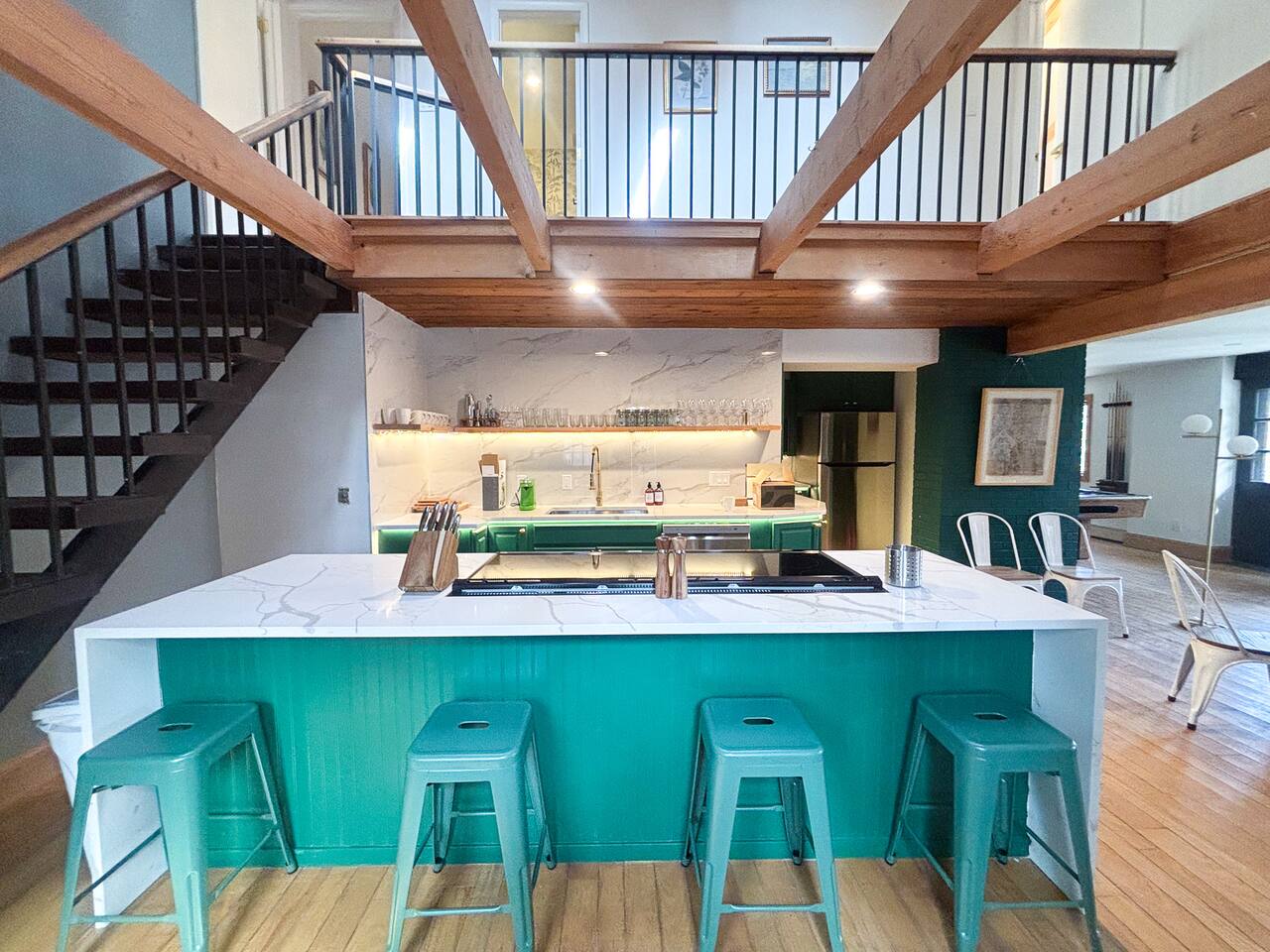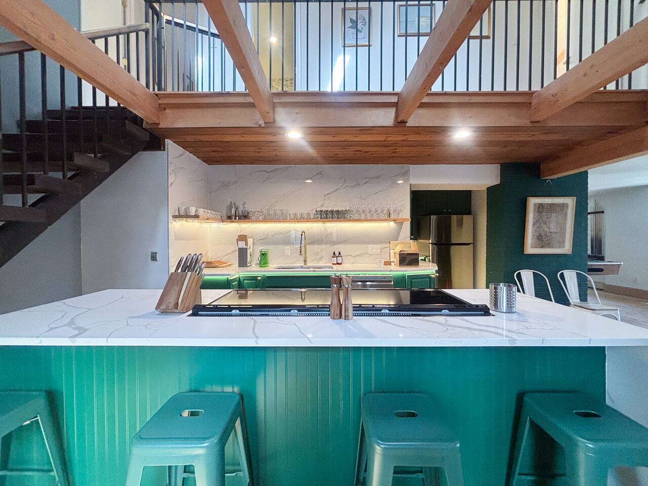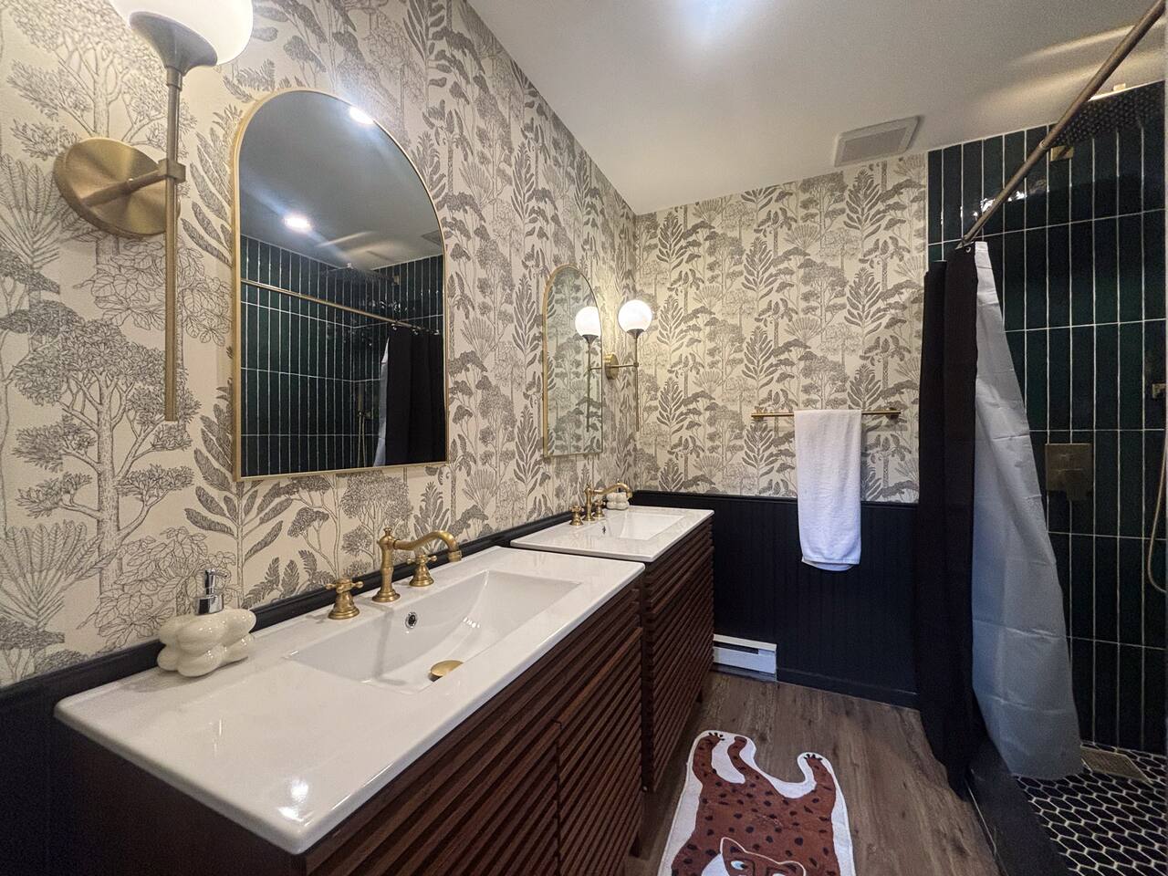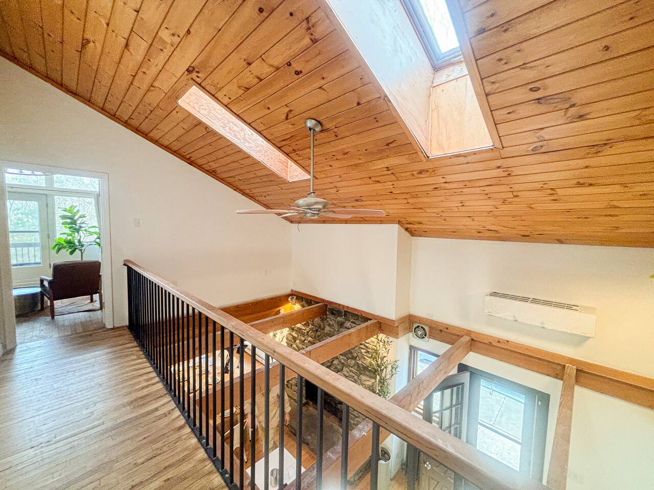 House details [In-ground swimming pool]: POOL IS CLOSED FOR THE SEASON. The outdoor private inground pool measures 20x40 feet and ranges from 3 to 6 feet in depth, offering a perfect space for relaxation and aquatic enjoyment. *Please note it's unheated. The pool will be open between late May to late September. Each year might be slightly different according to the weather. [7 people Sauna]: The sauna, enveloping up to 7 people, is luxuriously enveloped in freshly installed cedar wood paneling and features a powerful 5kW sauna heater, inviting guests to indulge in a relaxing and rejuvenating sweating session. [6 people Hot tub]: The hot tub, featuring 29 jets, provides guests with a comfortable and soothing experience while enjoying the serene view of the surrounding woodlands. [Elevator]: We've installed an elevator connecting the basement to the second floor, ensuring that individuals with disabilities can easily access and enjoy every part of the house. [Pool Table room]: The pool table room boasts a well-decorated ambiance centered around a full-size pool table, offering a sophisticated setting for enjoyable gameplay. It's a refined space tailored for those seeking leisure and social gatherings. [Game room]: The games room is equipped with a foosball table, air hockey, hockey and ring toss games, and a 55-inch TV featuring an arcade game console boasting over 10,000 games. It's a haven for entertainment enthusiasts with a variety of classic and modern gaming options. [Bar room]: The bar room features a beautifully decorated ambiance with a 6-foot-long black quartz countertop, accompanied by bar stools and an oversized sink. Equipped with a 60-inch TV, it accommodates up to 8 people for gambling while enjoying cocktails and watching TV simultaneously. [Movie theater] situated on the basement level, boasts a 120" screen, HD projector, and a professional speaker system, creating an immersive entertainment experience. With five luxurious reclining seats, it's the perfect space for enjoying movies or singing karaoke with friends and family. [Kitchen] is fully stocked for all cooking needs. We offer pots, pans, mixing bowls, cutting board, plates, cutlery and various glasses. Small appliances available are toaster, coffee maker, electric kettle, blender [Dining room] Seats 20 people. Has 60" smart TV. Gas fireplace would add cozy feeling to your evening [Family room]: The family room is furnished with a large leather sectional sofa, a coach, two armchairs, and an inviting egg hanging chair around a coffee table. A focal point is the spacious 75" HD smart TV, complete with party games, perfect for entertaining large groups. [Laundry room]: Contains of 2 washers and 2 dryers [Bedroom] 1st floor Bedroom 1 [1 King bed] Bedroom 2 [1 King bed] 2nd floor Bedroom 3 [2 King beds] Bedroom 4 [1 King bed] Bedroom 5 [1 King bed] Bedroom 6 [1 Queen bed + 1 bunk bed] Bedroom 7 [2 Queen beds] [Bathroom:] 1st floor Bathroom 1: Half bath Bathroom 2: Full bath Unattached to bedroom 2nd floor Bathroom 3: Full bath Unattached to bedroom Bathroom 4: In-suit full bath (attached to bedroom 3) Bathroom 5: In-suit full bath (attached to bedroom 7)