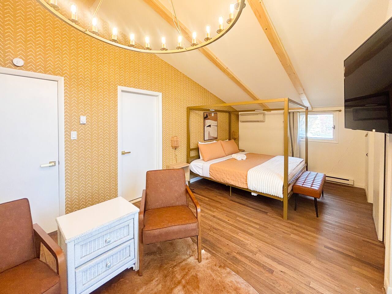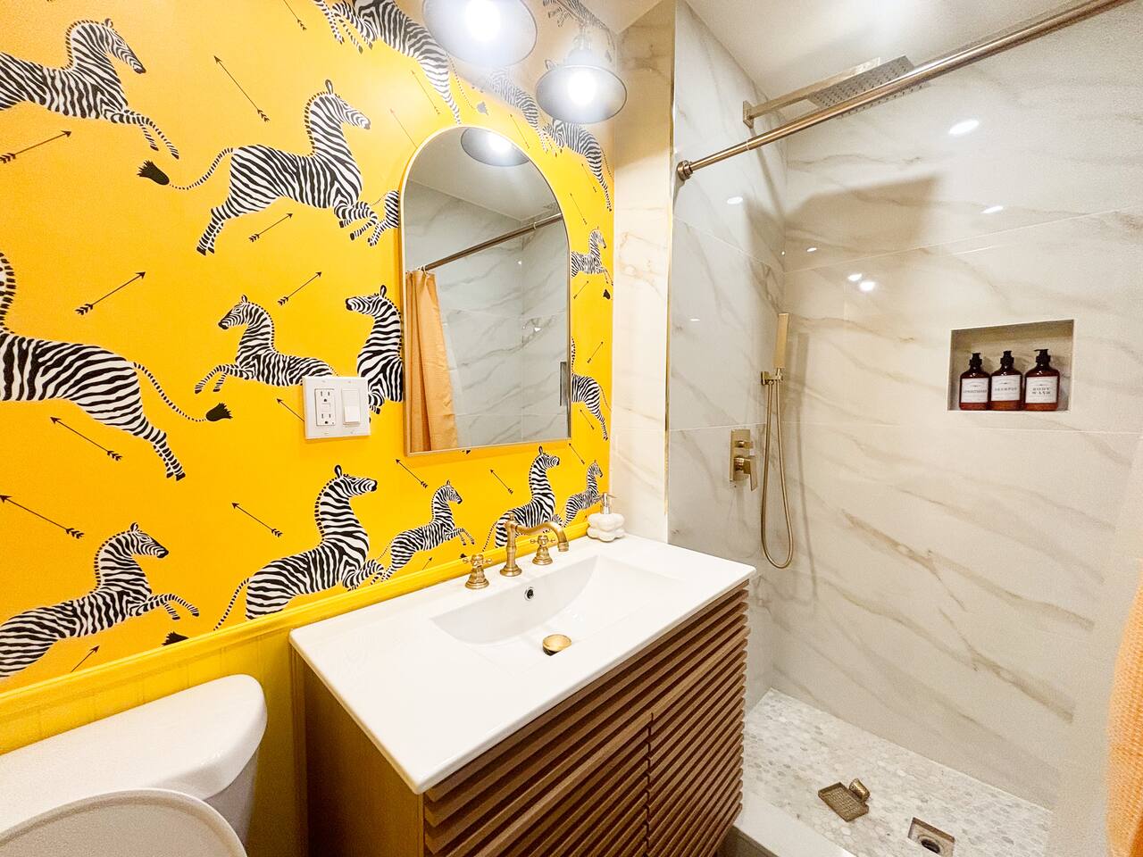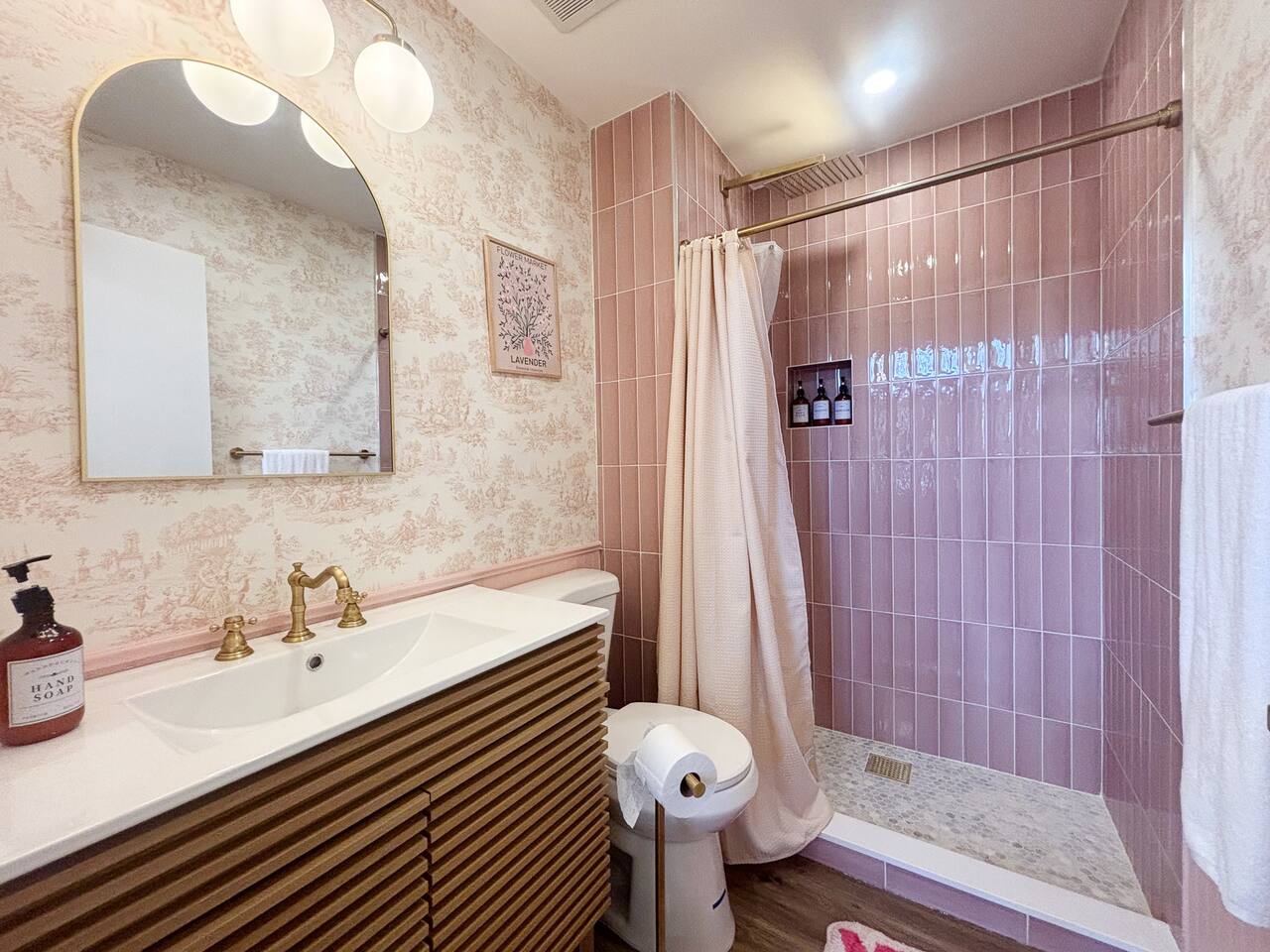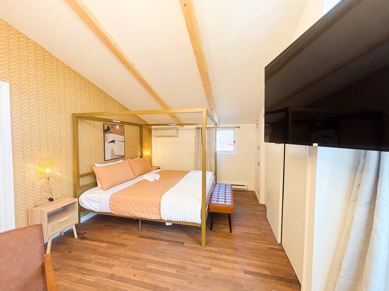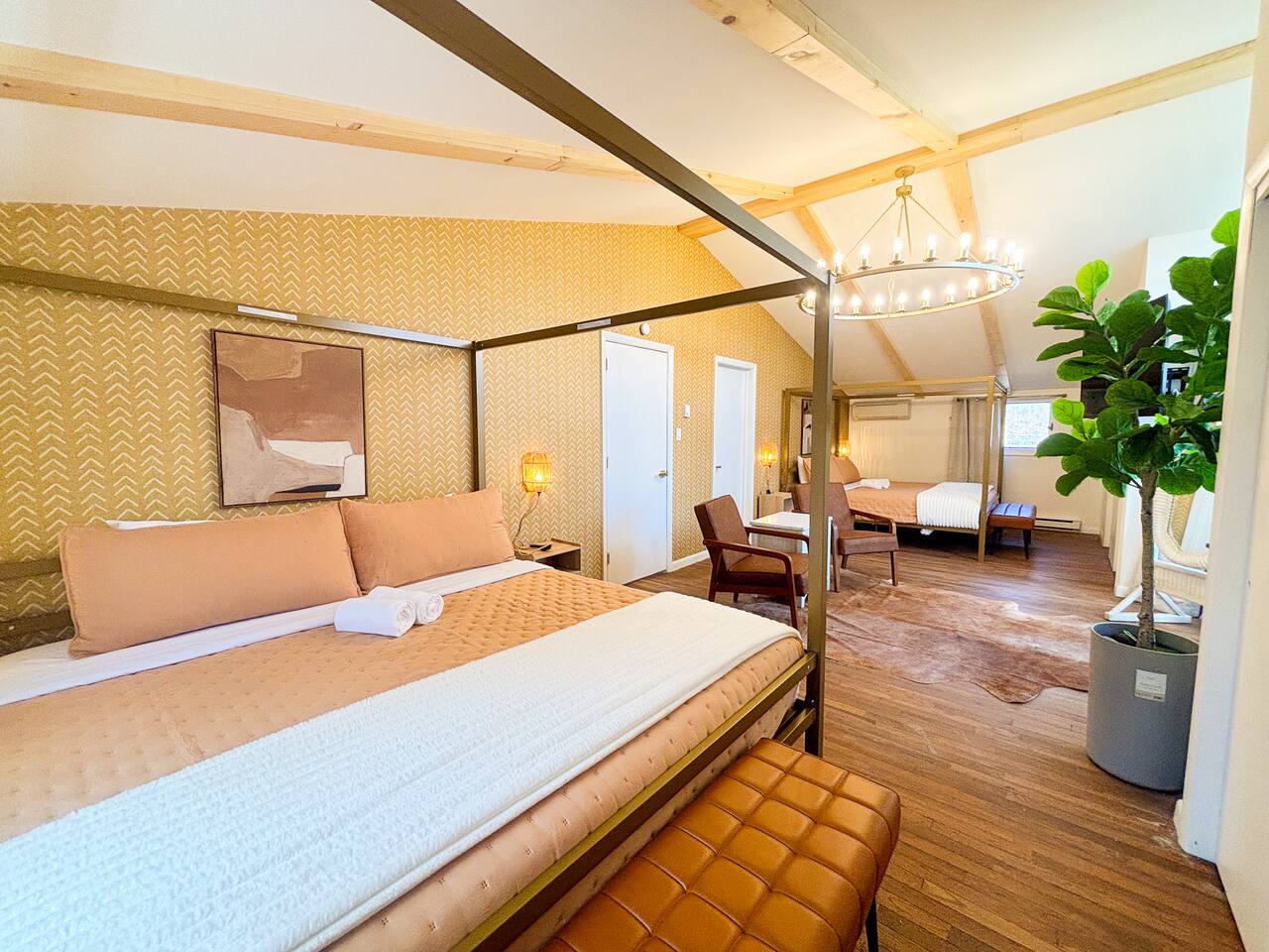 House details [In-ground swimming pool]: POOL IS CLOSED FOR THE SEASON. The outdoor private inground pool measures 20x40 feet and ranges from 3 to 6 feet in depth, offering a perfect space for relaxation and aquatic enjoyment. *Please note it's unheated. The pool will be open between late May to late September. Each year might be slightly different according to the weather. [7 people Sauna]: The sauna, enveloping up to 7 people, is luxuriously enveloped in freshly installed cedar wood paneling and features a powerful 5kW sauna heater, inviting guests to indulge in a relaxing and rejuvenating sweating session. [6 people Hot tub]: The hot tub, featuring 29 jets, provides guests with a comfortable and soothing experience while enjoying the serene view of the surrounding woodlands. [Elevator]: We've installed an elevator connecting the basement to the second floor, ensuring that individuals with disabilities can easily access and enjoy every part of the house. [Pool Table room]: The pool table room boasts a well-decorated ambiance centered around a full-size pool table, offering a sophisticated setting for enjoyable gameplay. It's a refined space tailored for those seeking leisure and social gatherings. [Game room]: The games room is equipped with a foosball table, air hockey, hockey and ring toss games, and a 55-inch TV featuring an arcade game console boasting over 10,000 games. It's a haven for entertainment enthusiasts with a variety of classic and modern gaming options. [Bar room]: The bar room features a beautifully decorated ambiance with a 6-foot-long black quartz countertop, accompanied by bar stools and an oversized sink. Equipped with a 60-inch TV, it accommodates up to 8 people for gambling while enjoying cocktails and watching TV simultaneously. [Movie theater] situated on the basement level, boasts a 120" screen, HD projector, and a professional speaker system, creating an immersive entertainment experience. With five luxurious reclining seats, it's the perfect space for enjoying movies or singing karaoke with friends and family. [Kitchen] is fully stocked for all cooking needs. We offer pots, pans, mixing bowls, cutting board, plates, cutlery and various glasses. Small appliances available are toaster, coffee maker, electric kettle, blender [Dining room] Seats 20 people. Has 60" smart TV. Gas fireplace would add cozy feeling to your evening [Family room]: The family room is furnished with a large leather sectional sofa, a coach, two armchairs, and an inviting egg hanging chair around a coffee table. A focal point is the spacious 75" HD smart TV, complete with party games, perfect for entertaining large groups. [Laundry room]: Contains of 2 washers and 2 dryers [Bedroom] 1st floor Bedroom 1 [1 King bed] Bedroom 2 [1 King bed] 2nd floor Bedroom 3 [2 King beds] Bedroom 4 [1 King bed] Bedroom 5 [1 King bed] Bedroom 6 [1 Queen bed + 1 bunk bed] Bedroom 7 [2 Queen beds] [Bathroom:] 1st floor Bathroom 1: Half bath Bathroom 2: Full bath Unattached to bedroom 2nd floor Bathroom 3: Full bath Unattached to bedroom Bathroom 4: In-suit full bath (attached to bedroom 3) Bathroom 5: In-suit full bath (attached to bedroom 7)