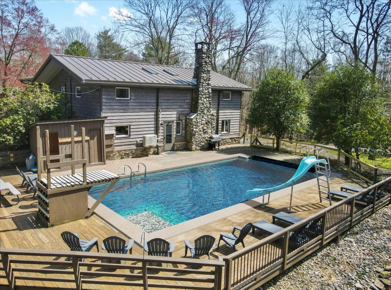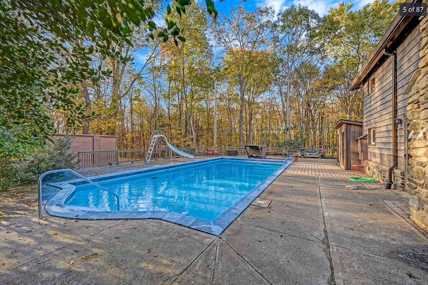 Our huge 5000 sq ft, 7 bedroom, 4.5 bathroom home which sleeps 20 guests, is located very centrally in the heart of Poconos.Enjoy the amazing flat backyard with brand new OUTDOOR PRIVATE INGROUND POOL (20x40 size, 3’-6’ deep) Tastefully decorated, this home has everything you need to enjoy your time whether you want to relax, play a game of poker, billiards, or cook a family meal at our oversize kitchen for a large group! [INGROUND POOL CLOSE FOR THE SEASON]